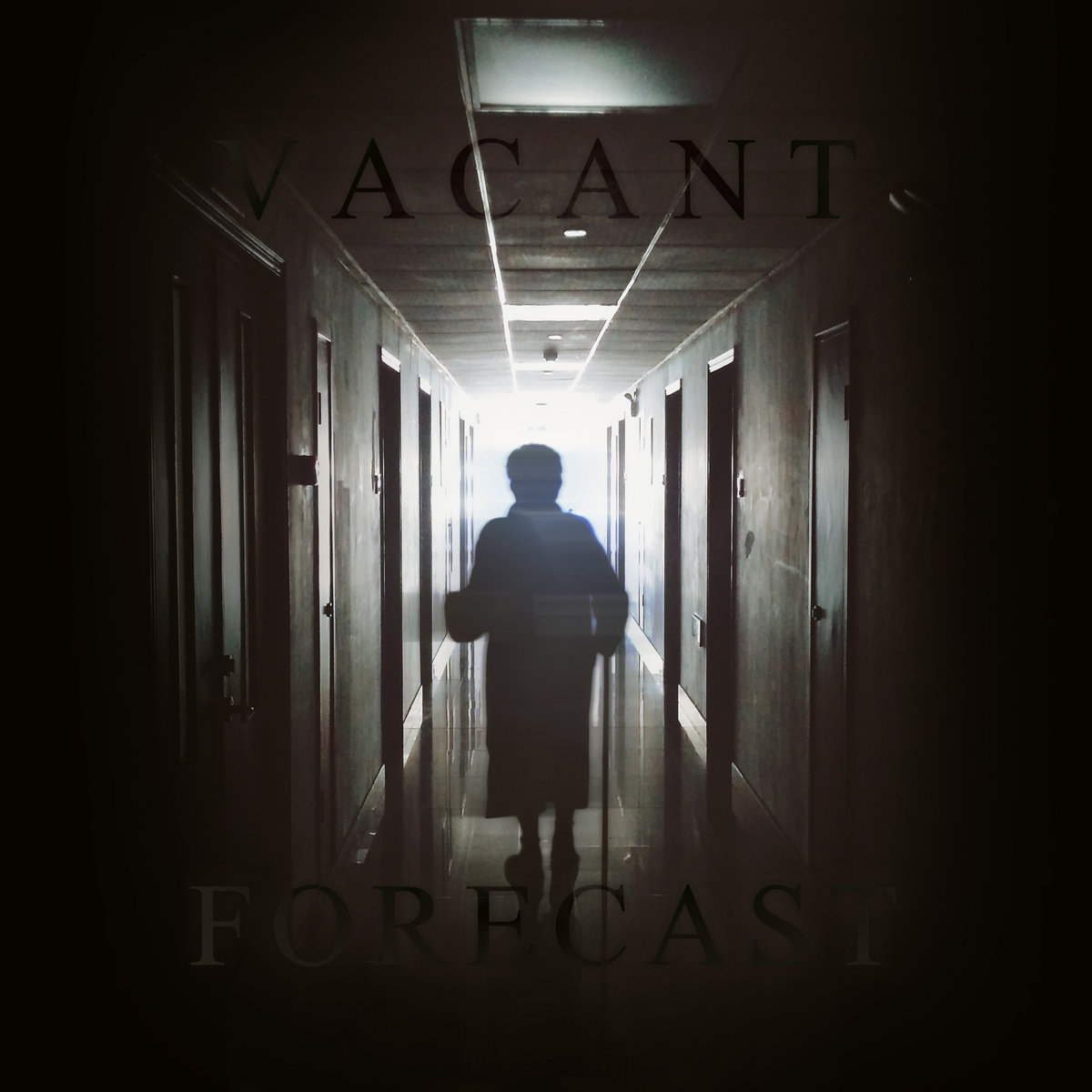 I see a silhouette plodding along the hallway with a slow stride.